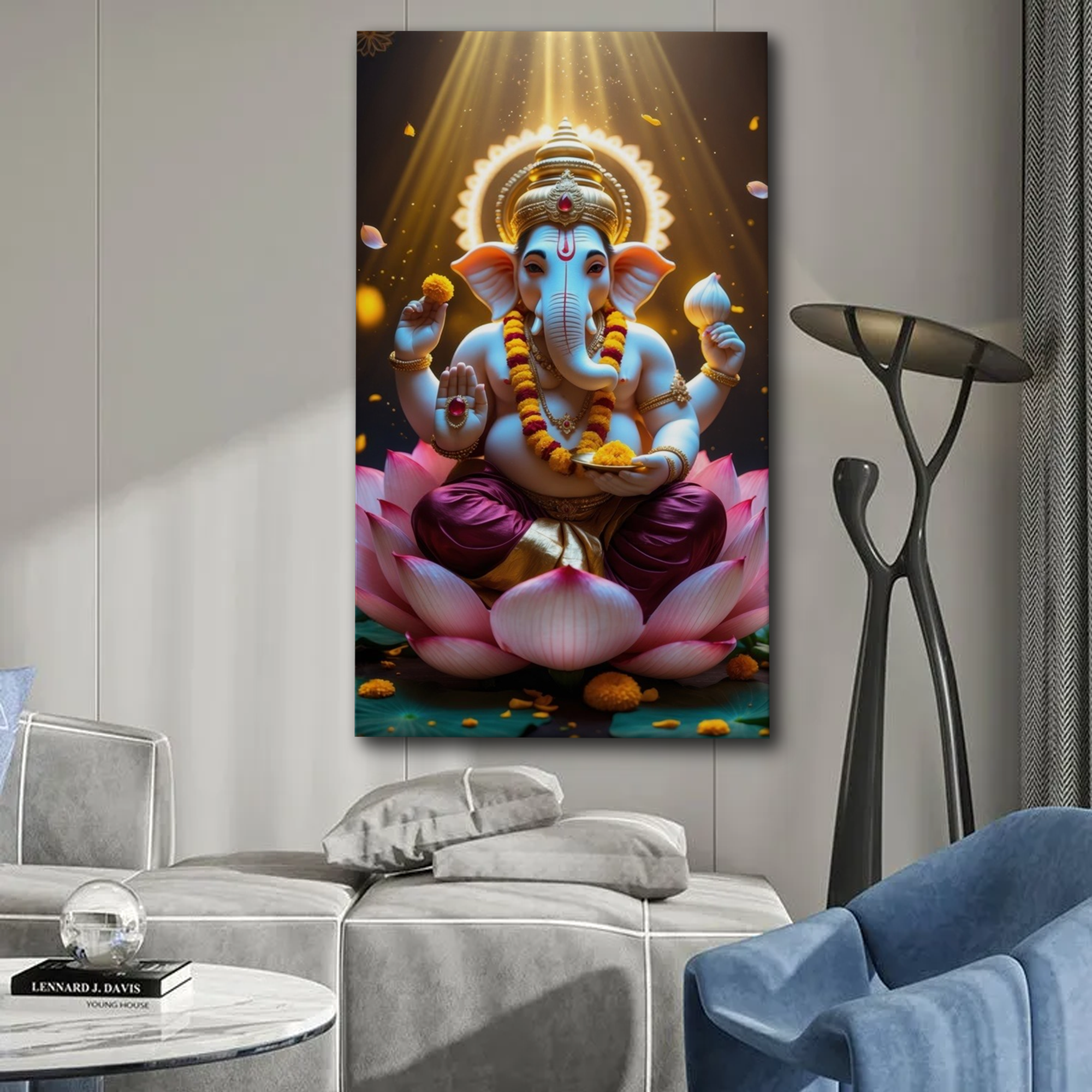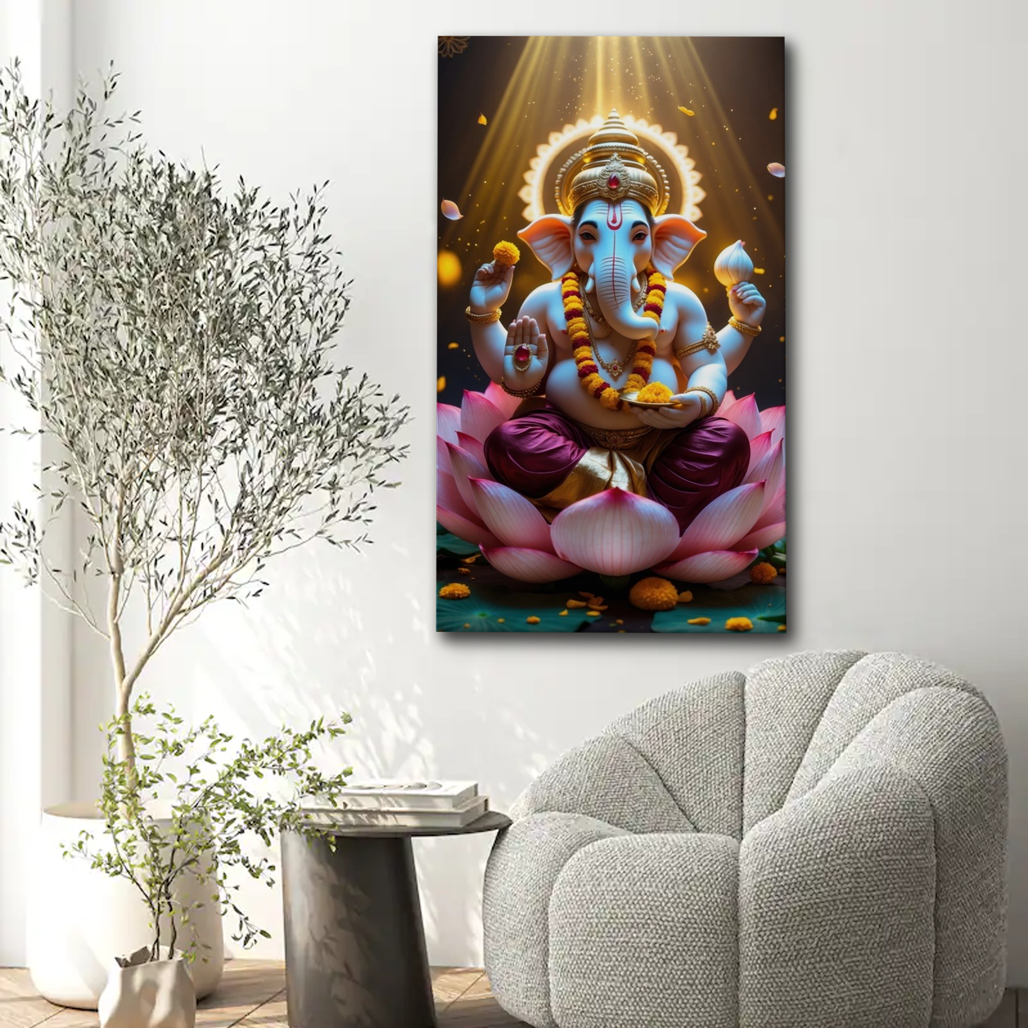Divine Lotus Ganesha Canvas Wall Art – Radiance, Wisdom & Prosperity