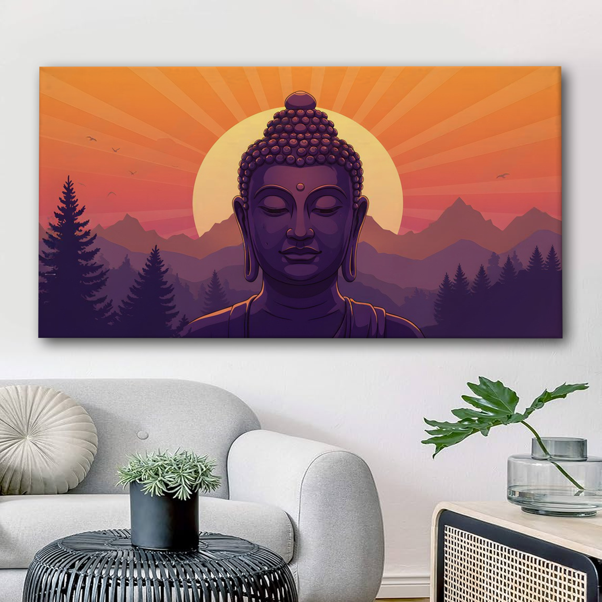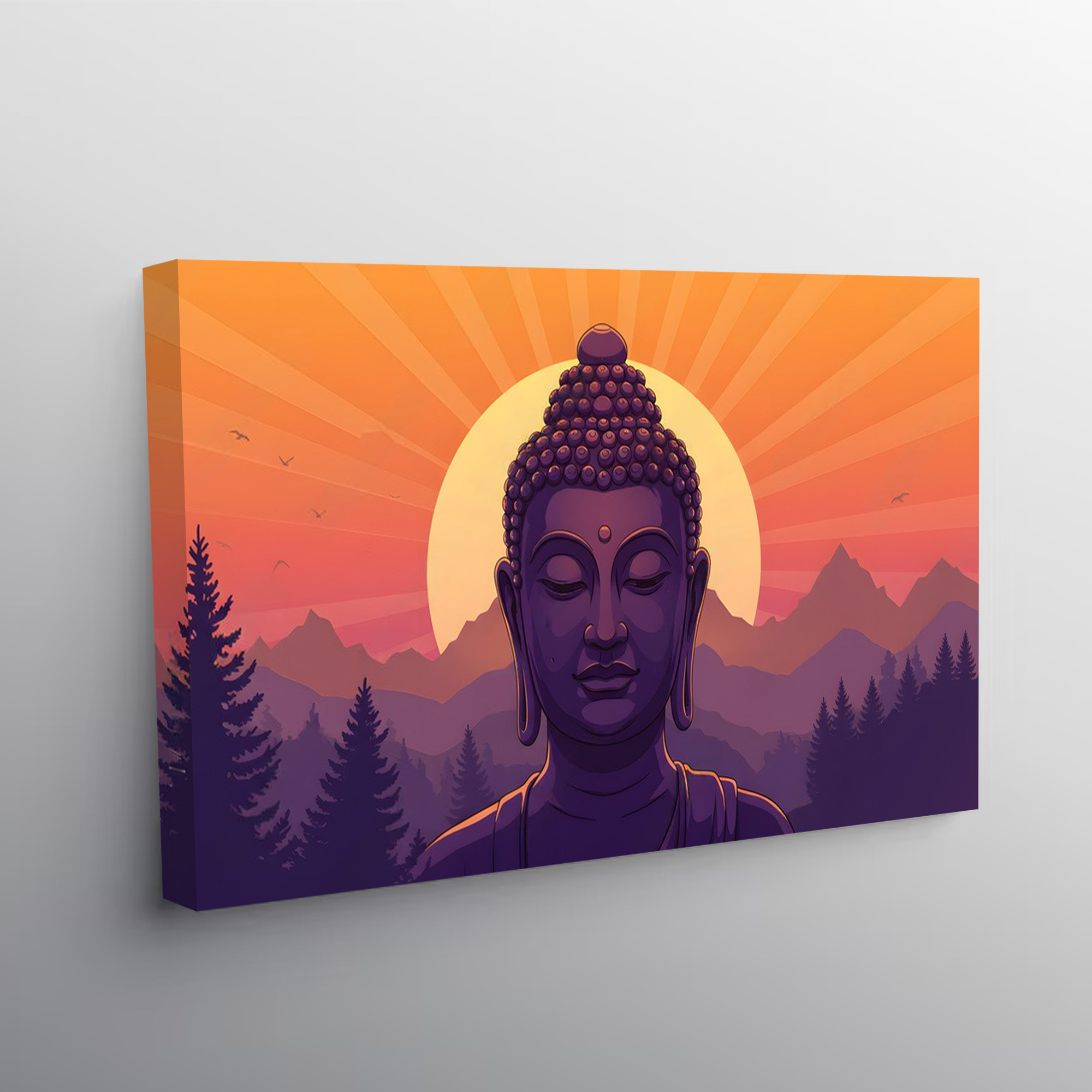 Mystic Buddha at Sunset – Modern Spiritual Canvas Wall Art for Home & Office